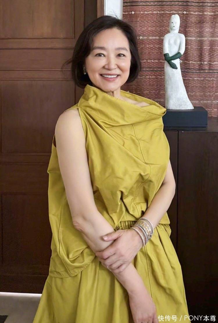 再看林青霞这身造型,姜黄色的上衣,袖子和领口的缱绻齐很特有!然而这种色调关于皮肤洁白的林青霞来说,更显气色!搭配难懂工整的耳饰,优雅减龄!